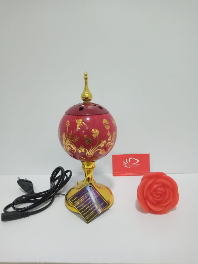 Unique designs Electric Incense Burner, a must-have in every home. Your home can feel fresh, scented and divine when you have this incense burner with you. The perfect perforated design lets aroma fill the entire space, thus offering you a soothing effect. The ring on top makes it easy and comfortable to hang, very children friendly ( has a closed magnetic top) .
